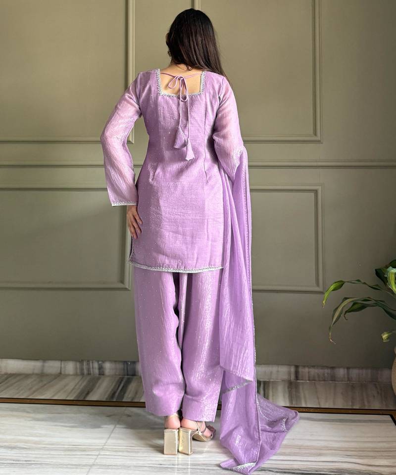 | Product Name | Sky Blue Crunchy Silk Farshi Salwar Suit Set With Siroski Work | |