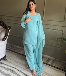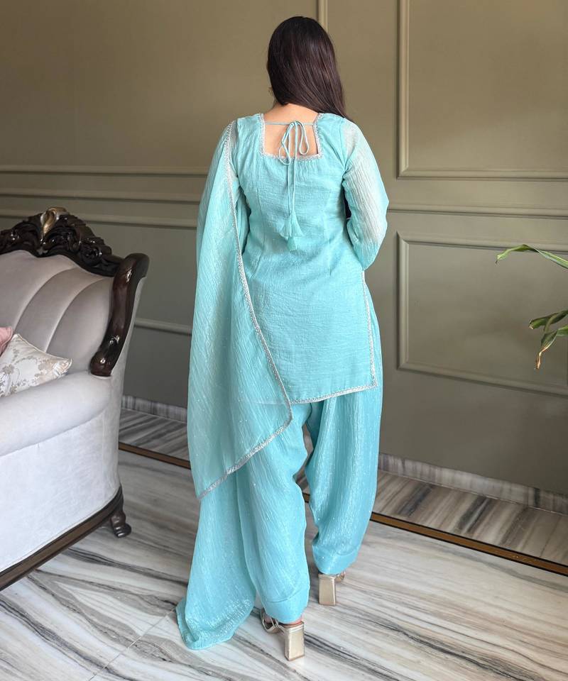 Sky blue crunchy silk farshi salwar suit set with siroski work