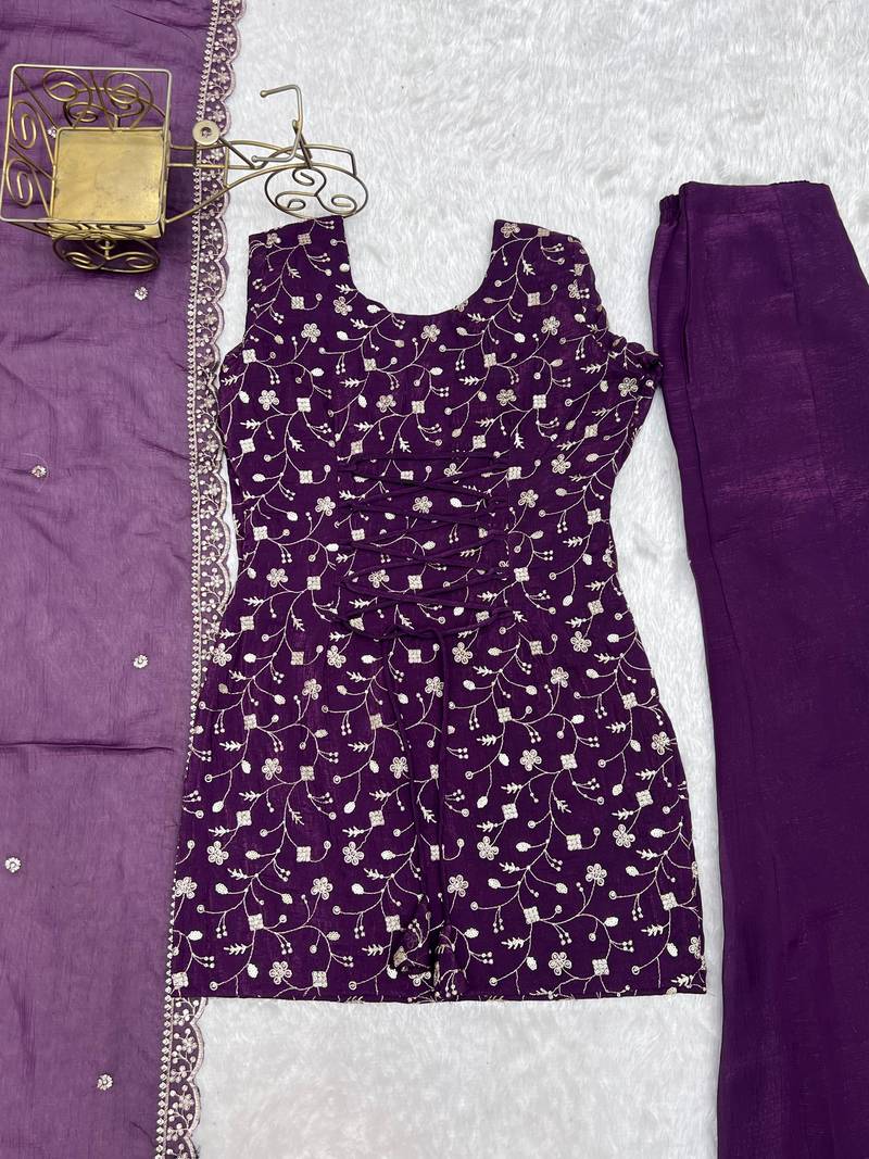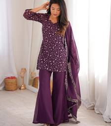| Product Name | Wine Crunchy Silk Straight Kurta Bell Bottom Pant Set With Jari & Sequence Embroidery | |