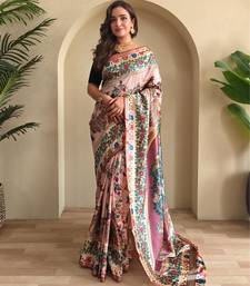 Baby pink art silk woven saree