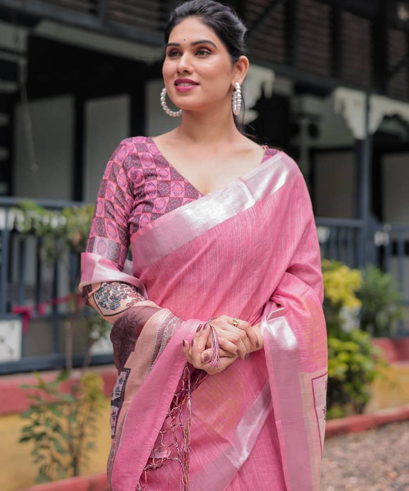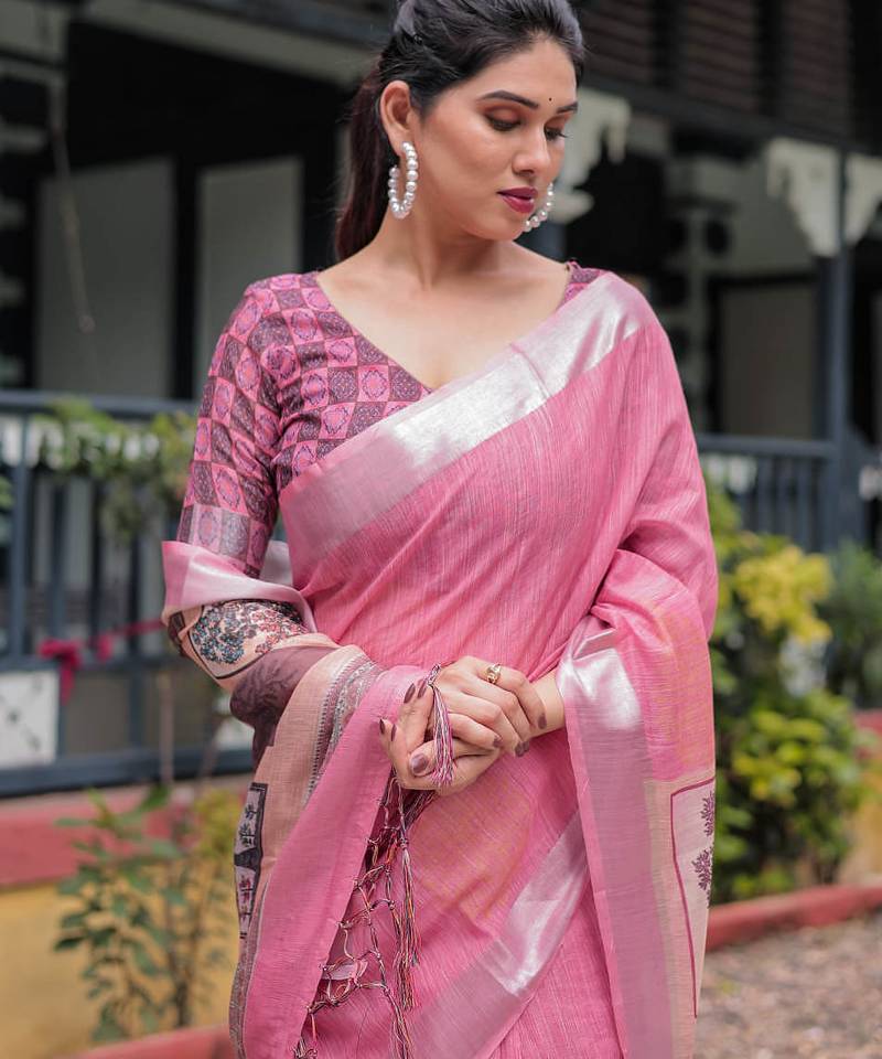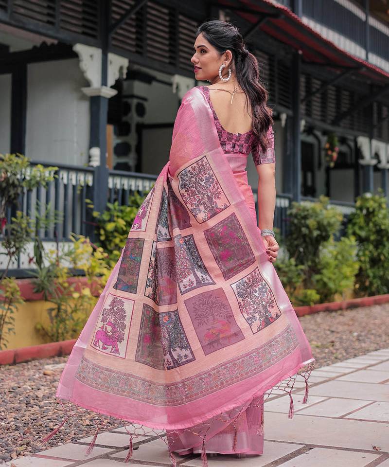 | Product Name | Baby Pink Printed Art Silk Designer Pallu Saree | |
