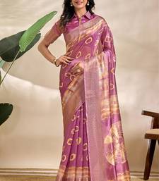 Baby pink printed art silk designer pallu saree