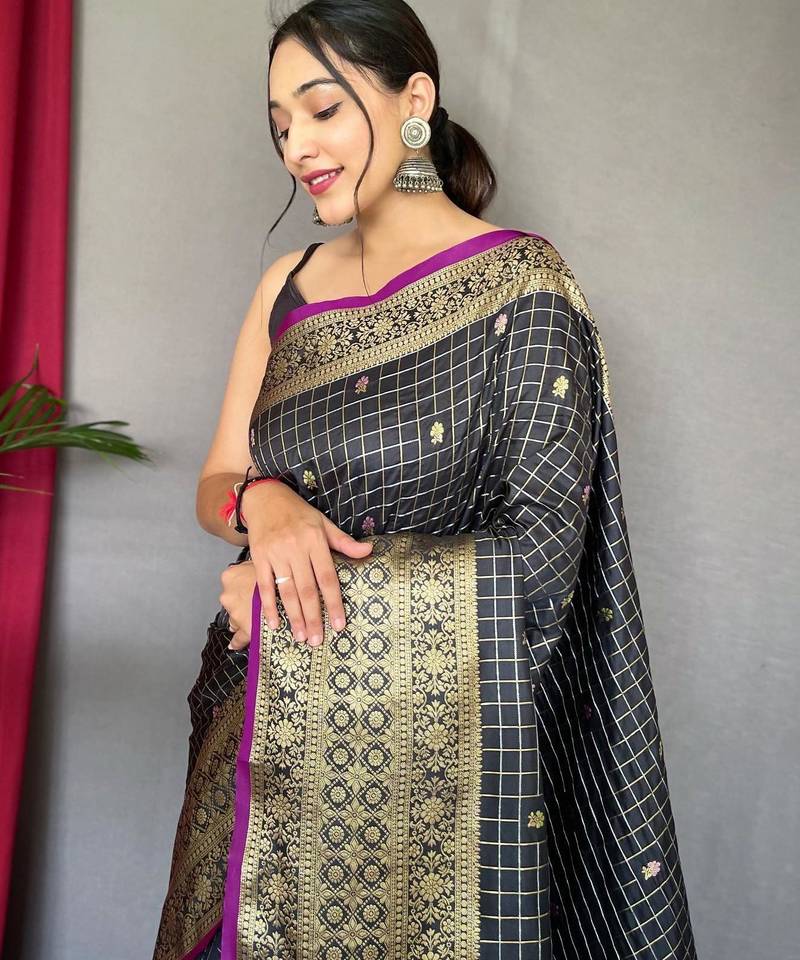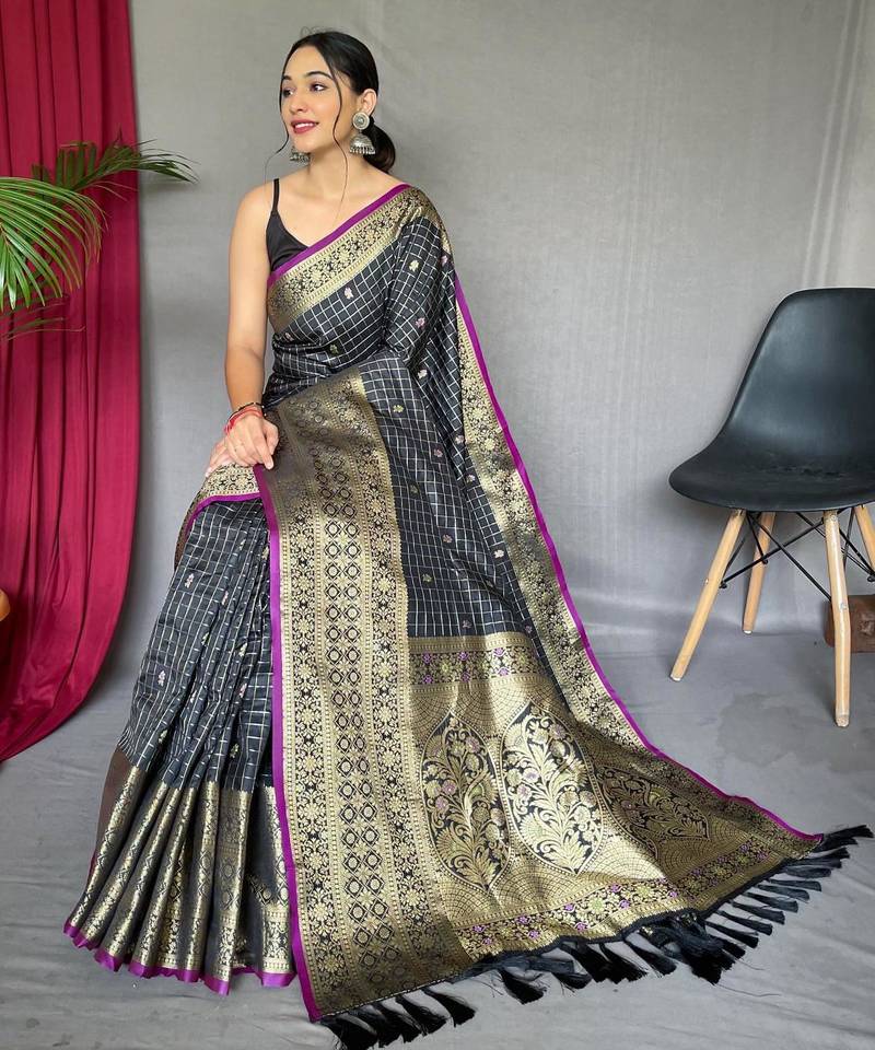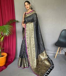 Black art silk woven saree