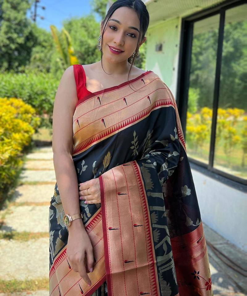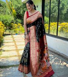 Black art silk woven saree
