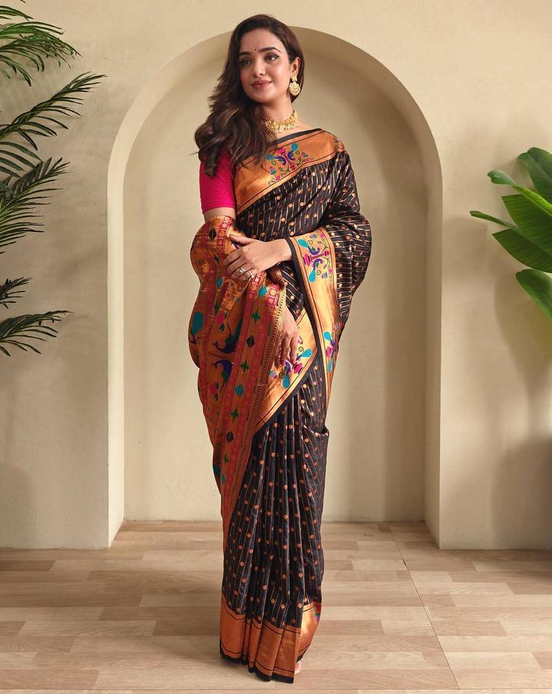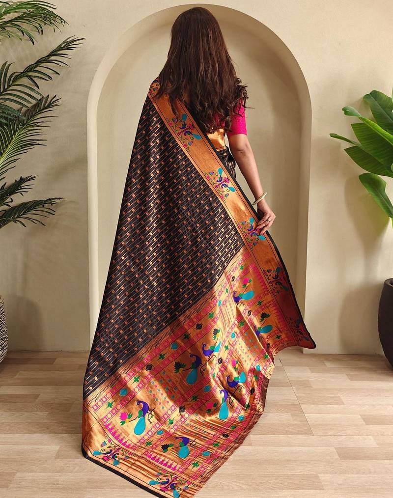 Black art silk woven saree