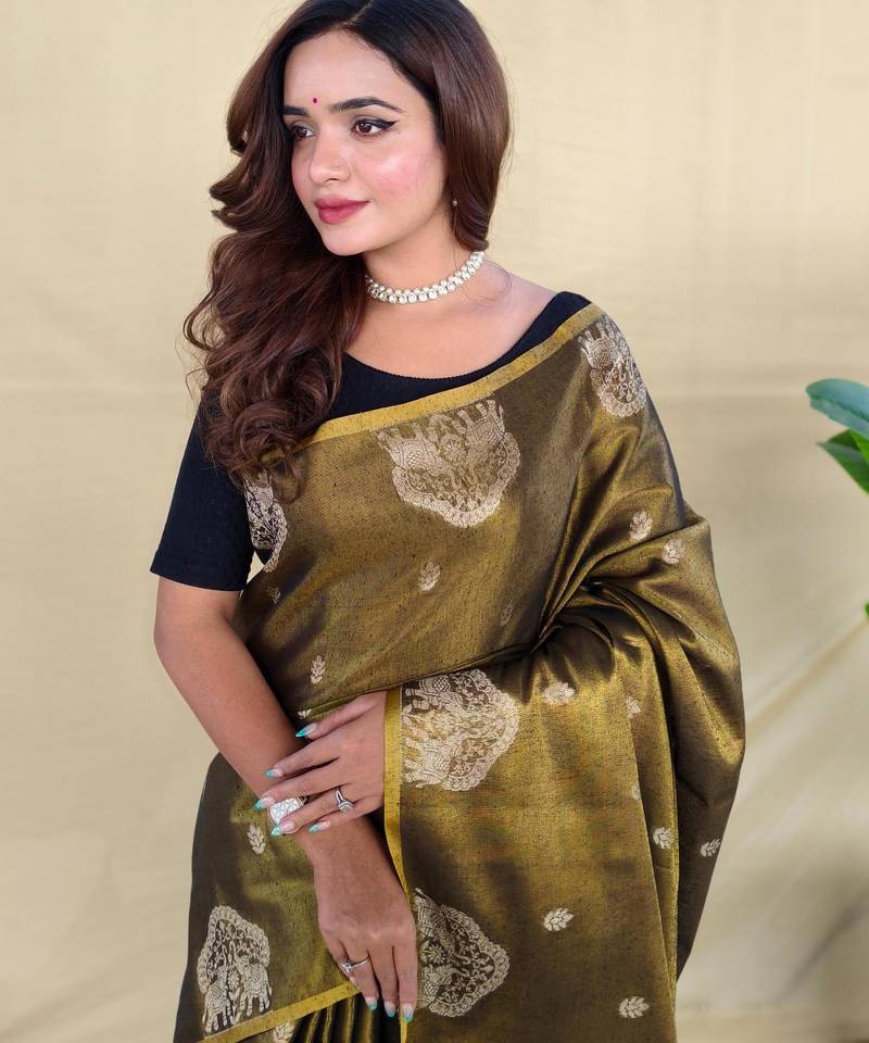 Black art silk woven saree