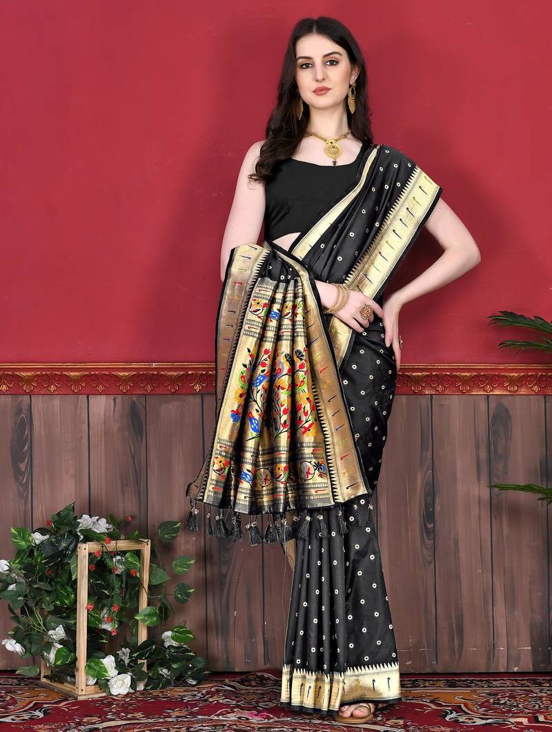 | Product Description | Soft Paithani Silk Saree With Zari Weawing Meenakari Motifs Design And Meenakari Weawing Rich Pallu With Meenakari Weawing Border & Tassels Attached At Pallu End. Blouse : Enrich Silk Weawing Contrast Blouse Piece With Sleeve Border , |