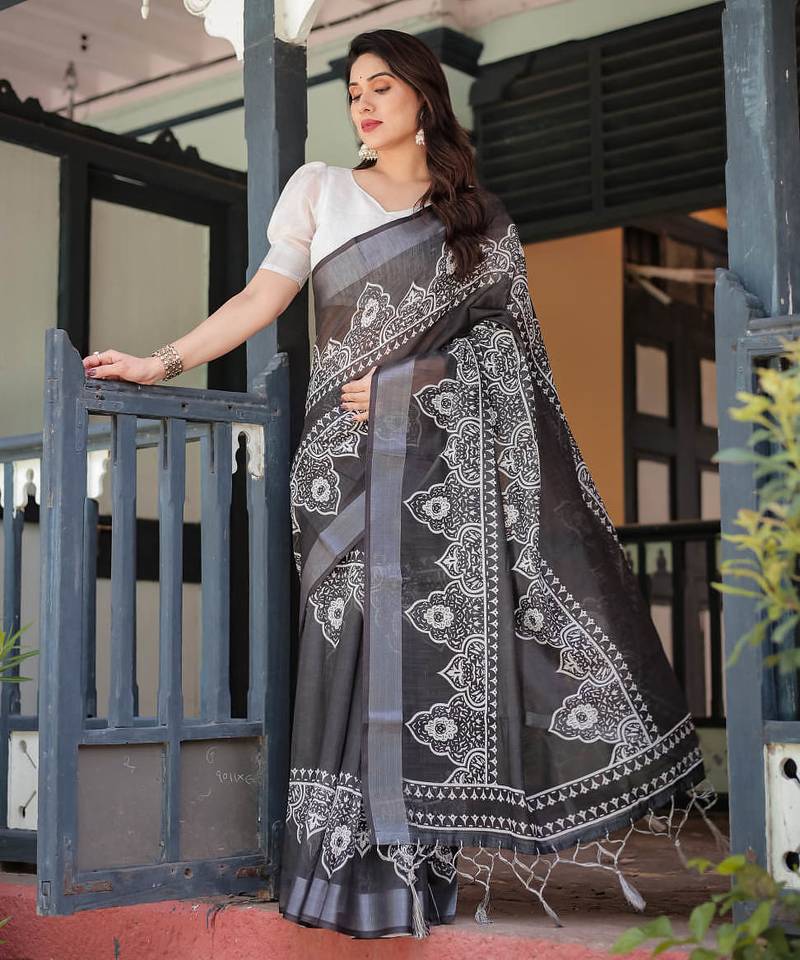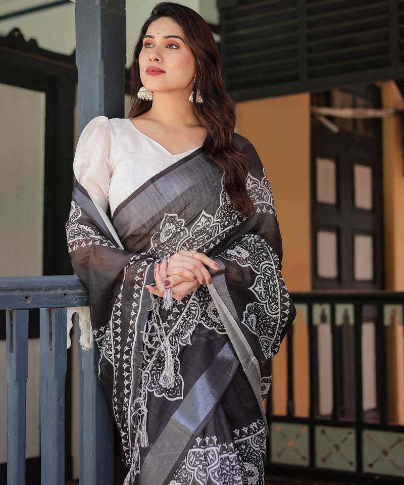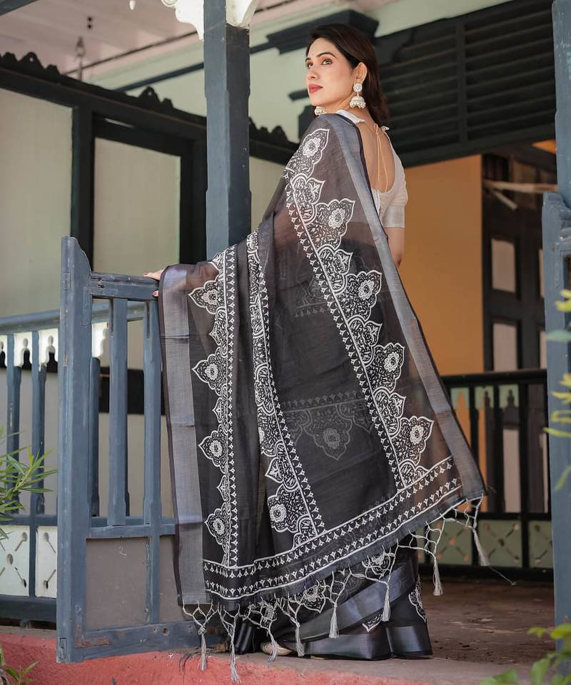 | Product Name | Black Printed Art Silk Designer Pallu Saree | |