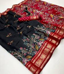 | Product Name | Black Viscose Silk Kalamkari Saree With Peacock Motif Design | |