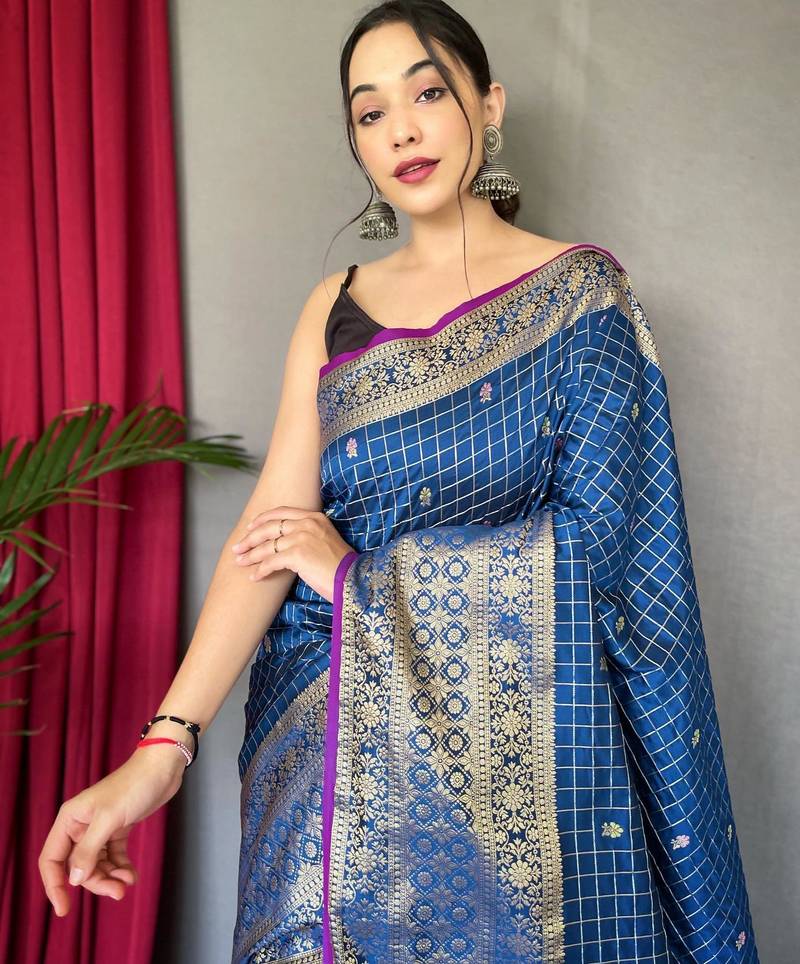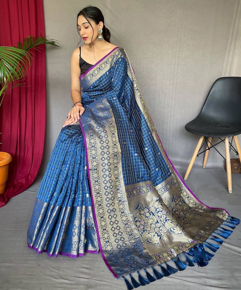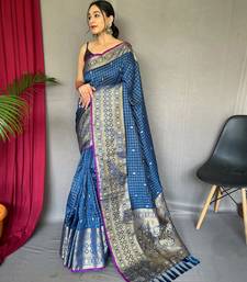 Blue art silk woven saree