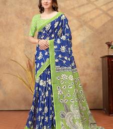 Blue printed art silk designer pallu saree