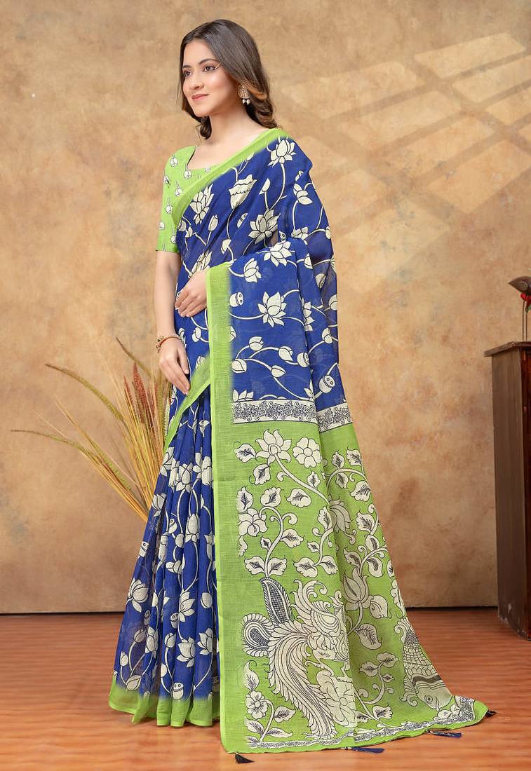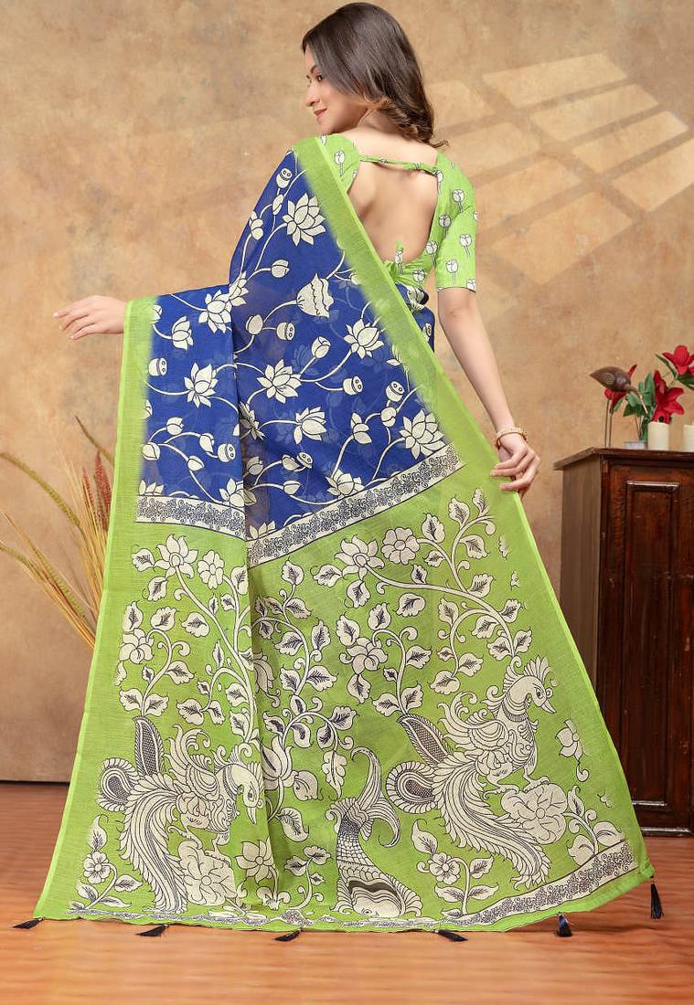 | Product Name | Blue Printed Art Silk Designer Pallu Saree | |
