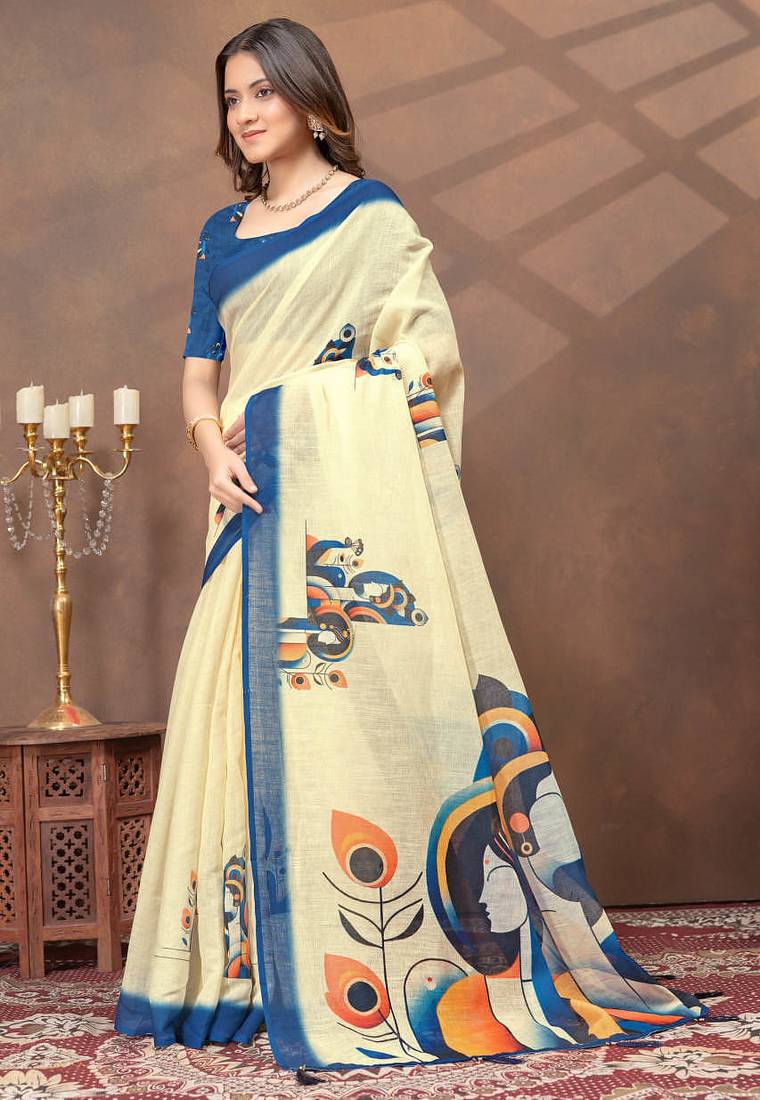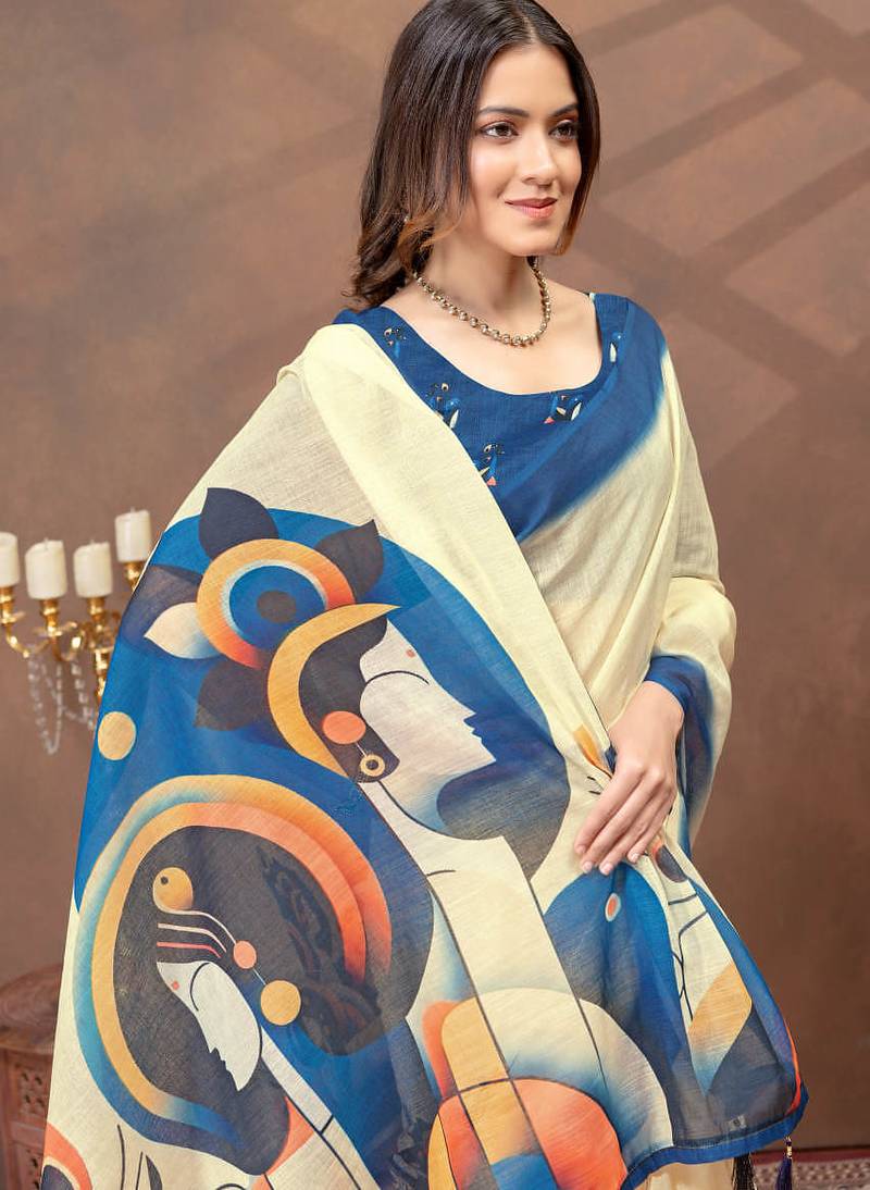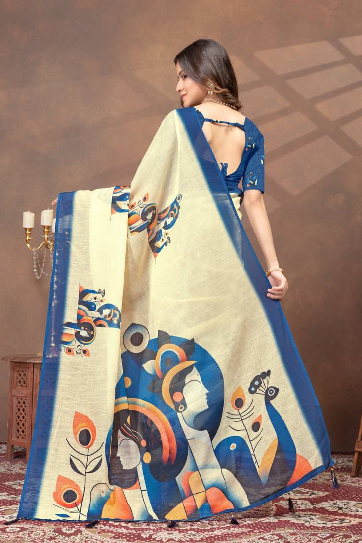 Product Name Blue Printed Art Silk Designer Pallu Saree