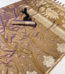 Brown banarasi silk saree with swan zari motifs & designer pallu