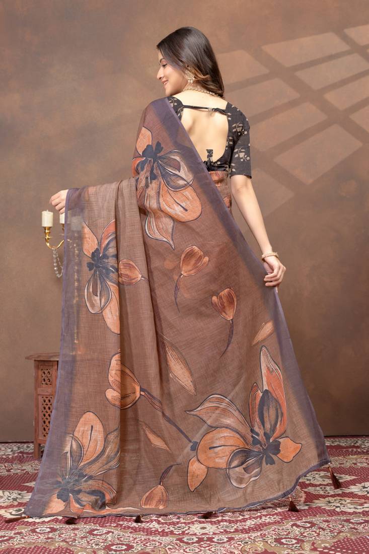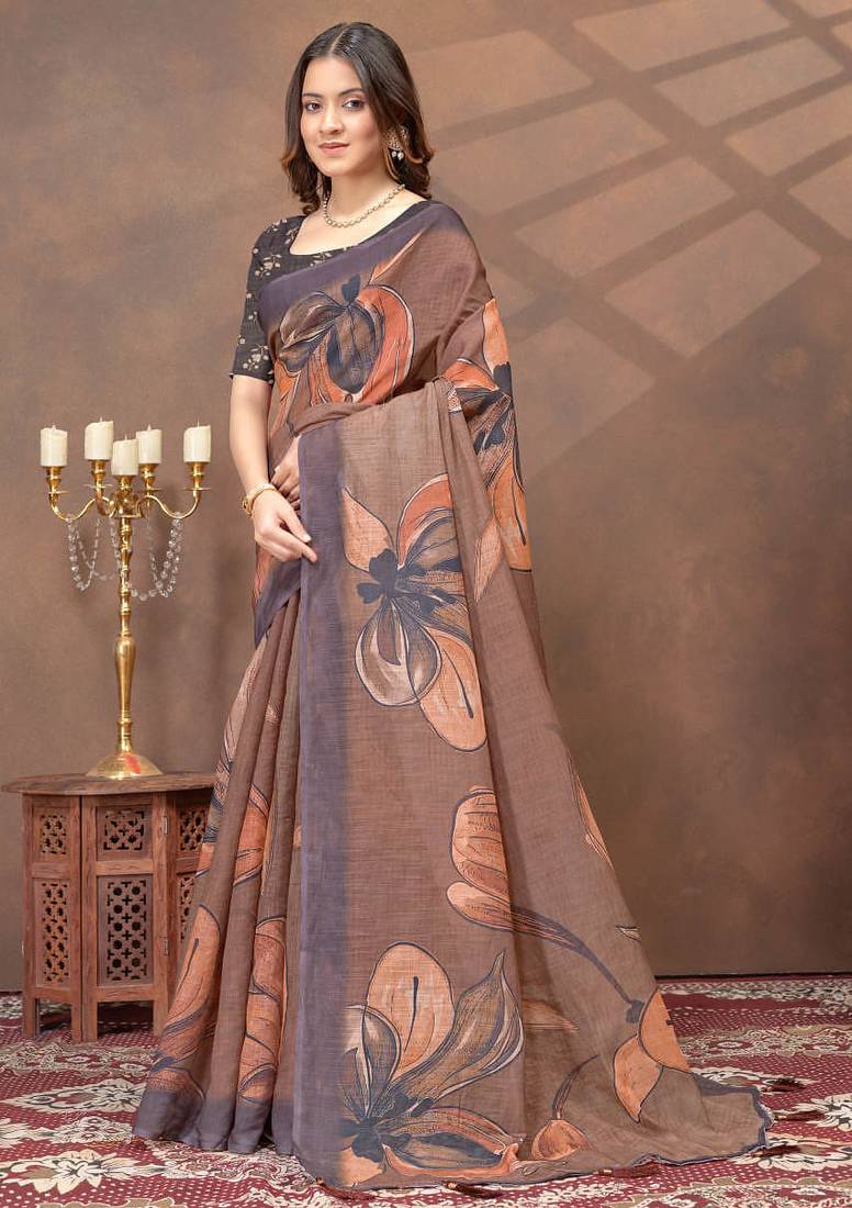 | Product Name | Brown Printed Art Silk Designer Pallu Saree | |