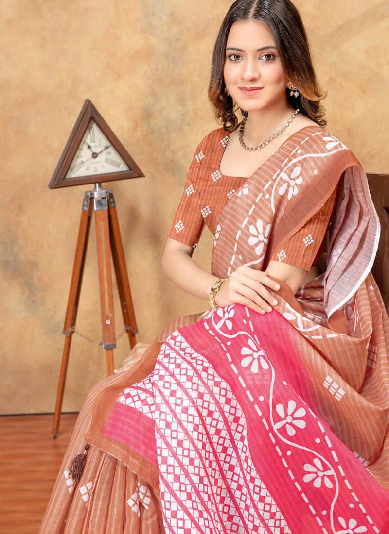 | Product Name | Brown Printed Art Silk Designer Pallu Saree | |
