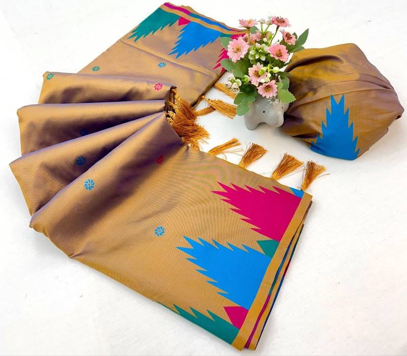 | Product Name | Brown Soft Silk Saree With Temple Border, Dual Zari Motifs & Contrast Pallu | |