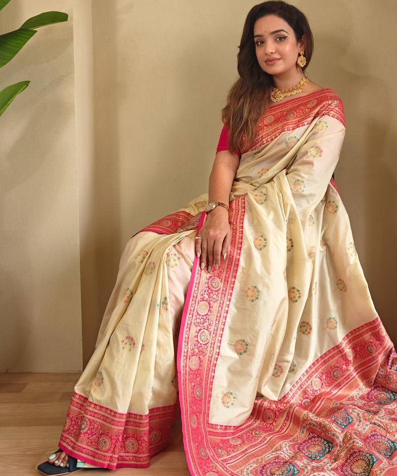 | • | Saree | : | Color- Cream / Fabric- Art Silk |