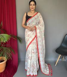 Cream art silk woven saree