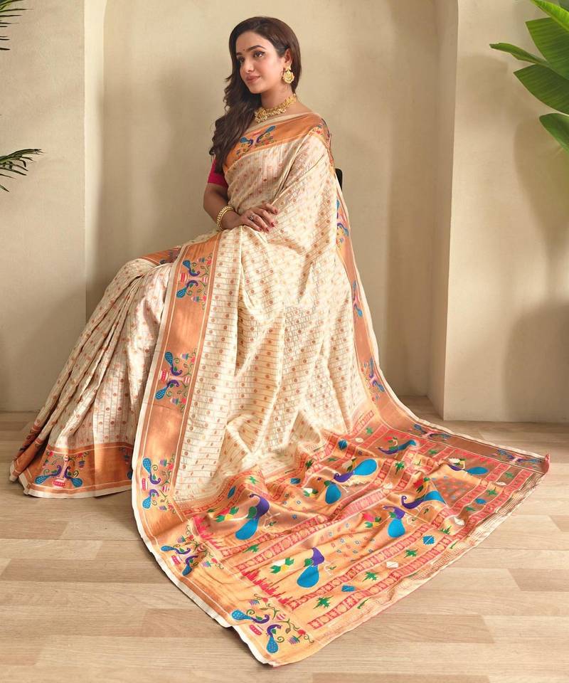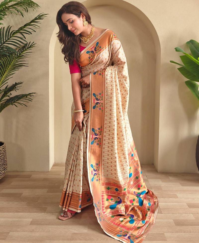 | • | Saree | : | Color- Cream / Fabric- Art Silk |