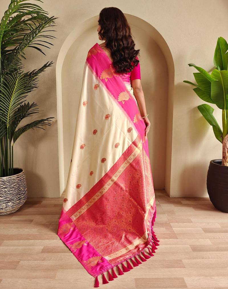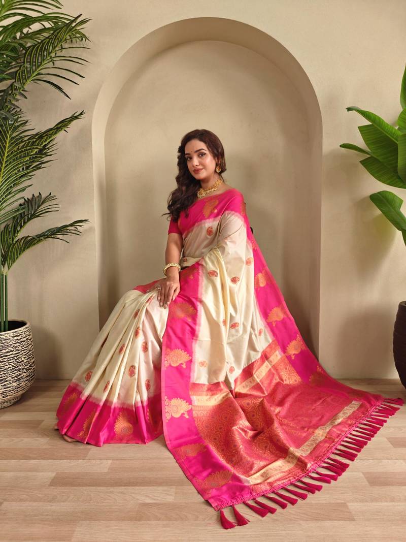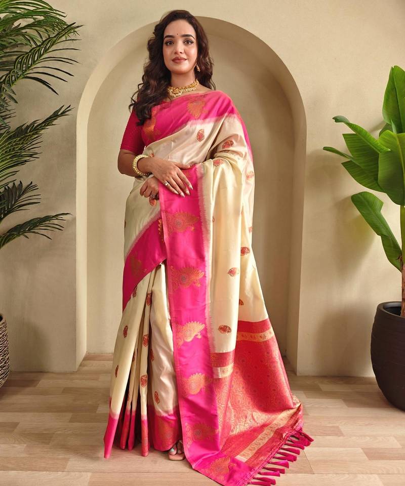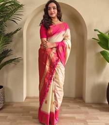 Cream art silk woven saree