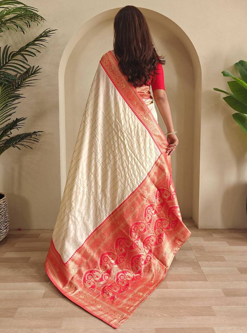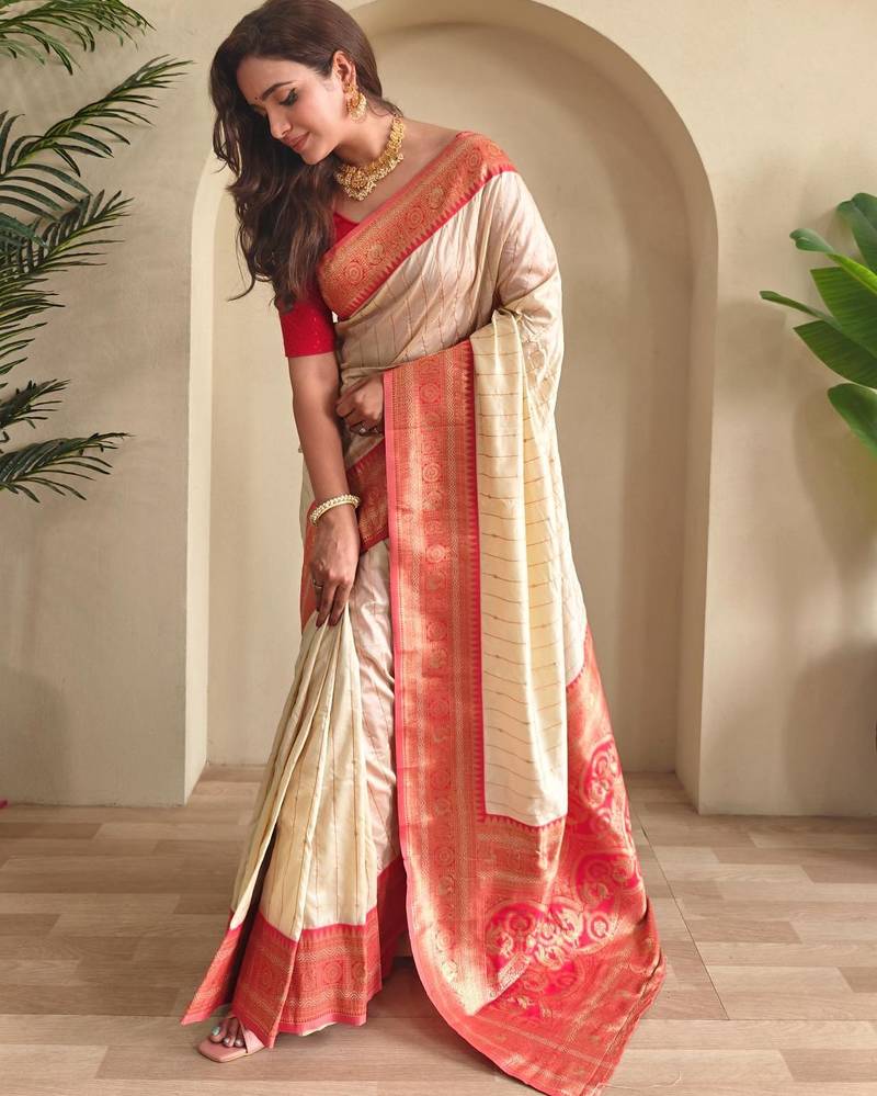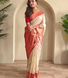 Cream art silk woven saree