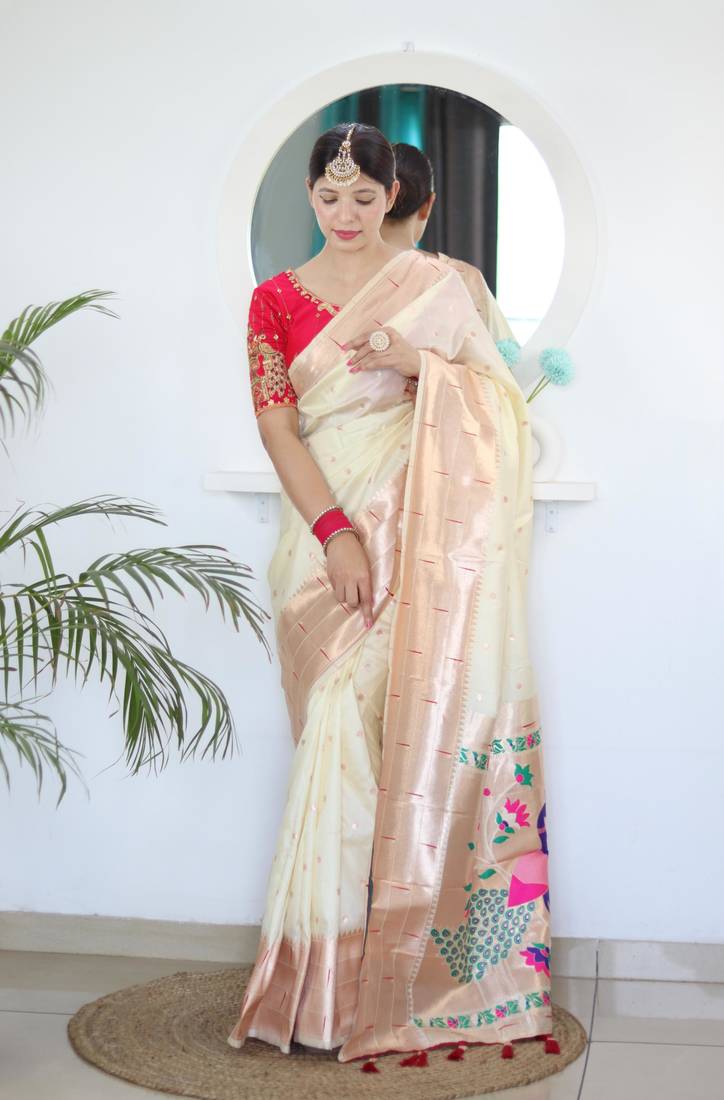 | Product Name | Cream Elegant Art Silk Woven Saree With Rich Zari Border | |