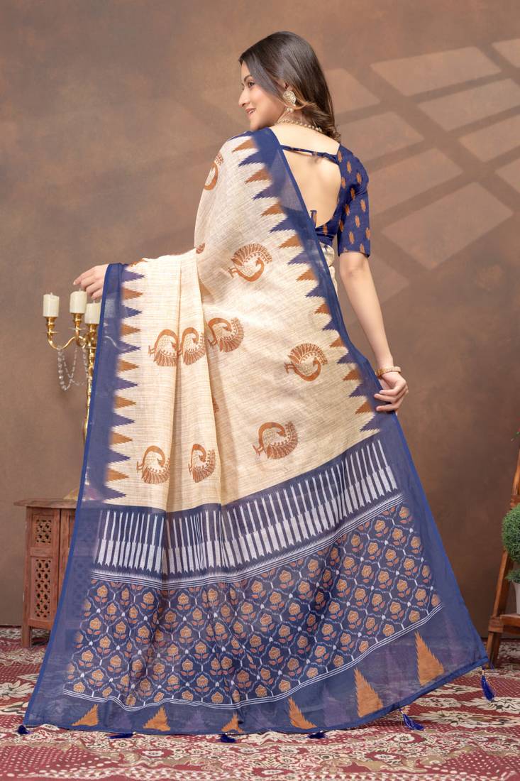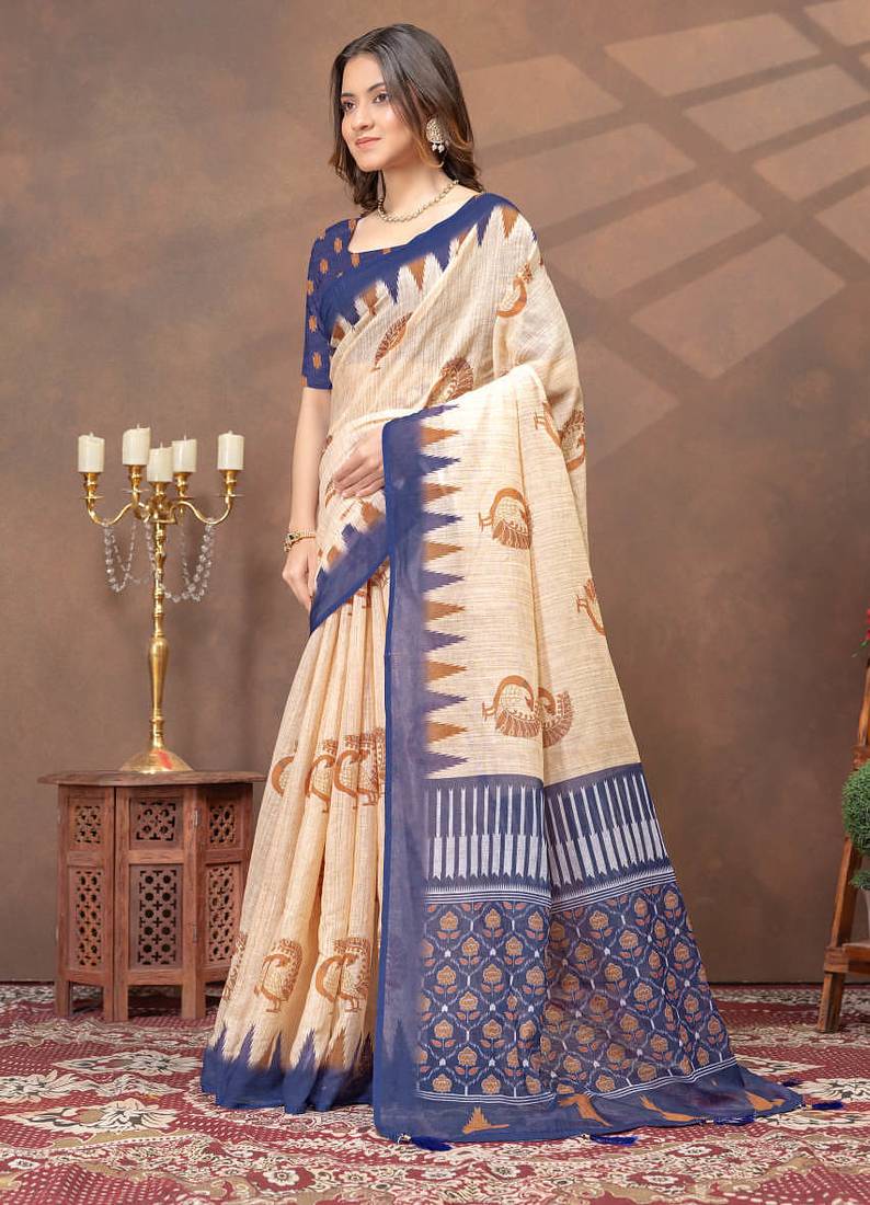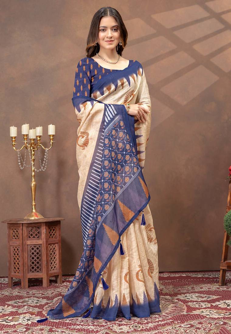 | Product Name | Cream Printed Art Silk Designer Pallu Saree | |