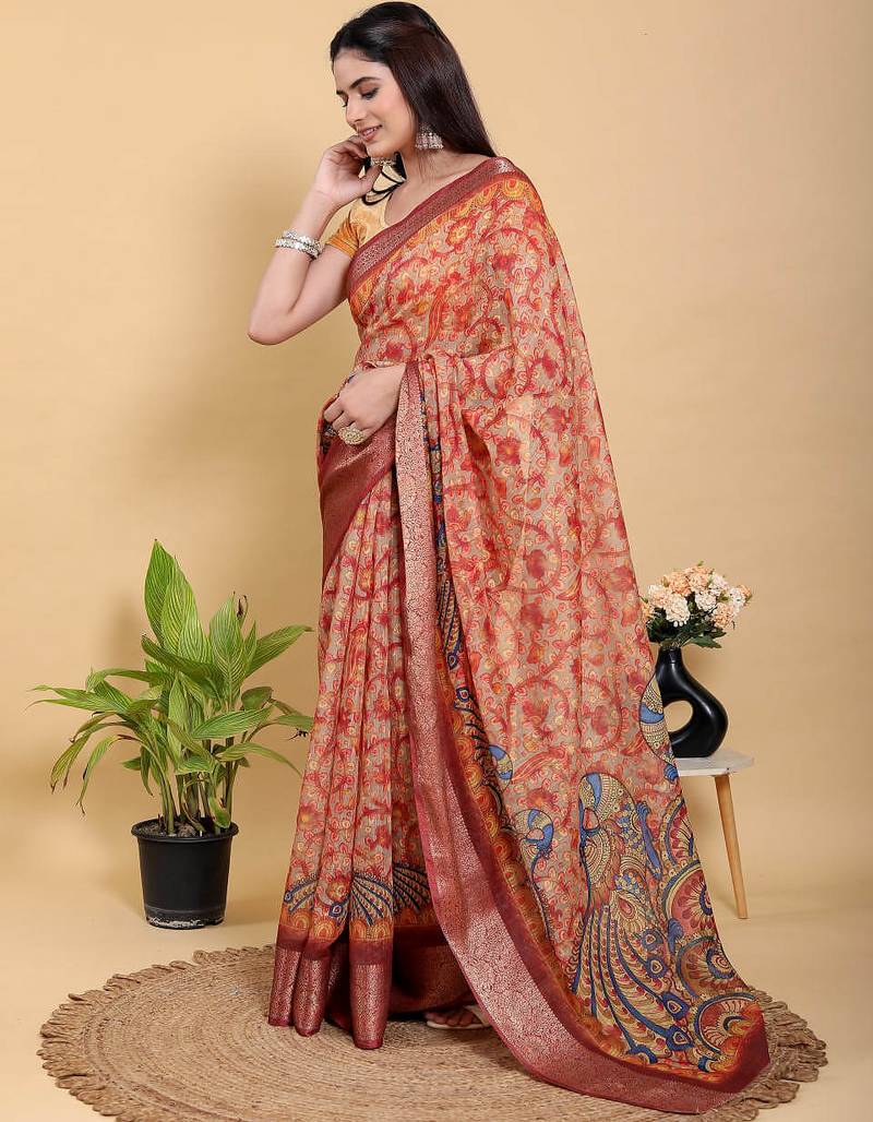 | • | Blouse | : | Color- Orange / Fabric- Art Silk |