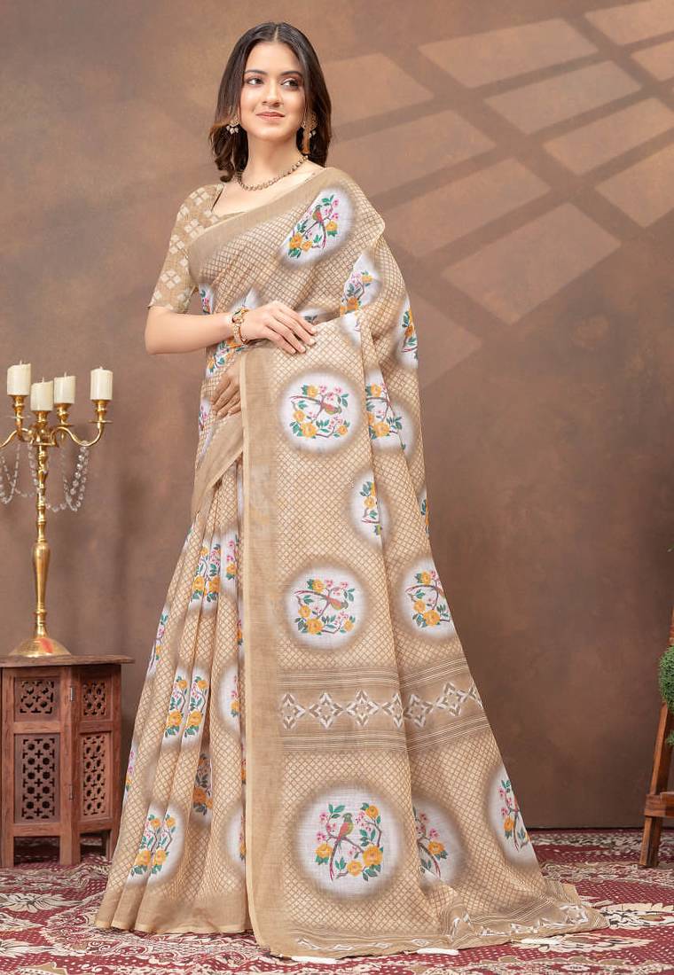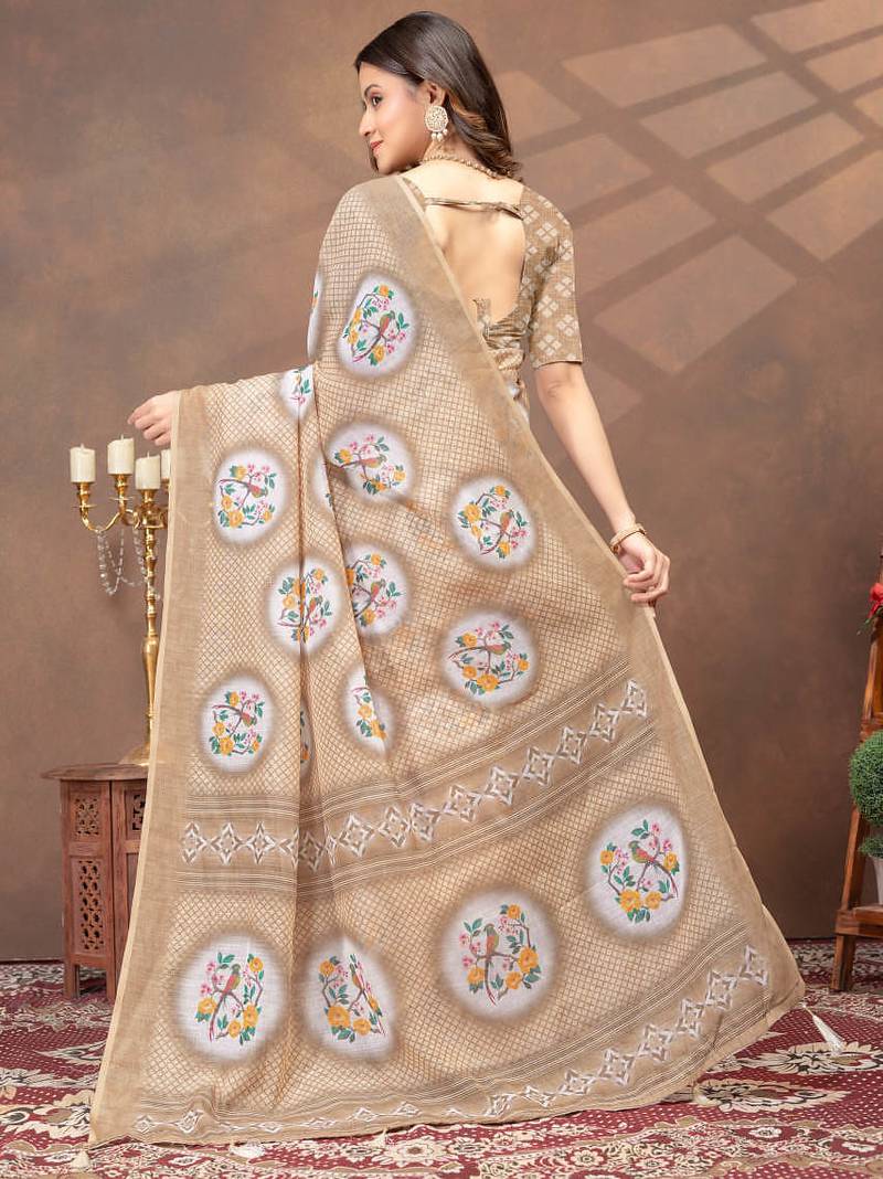 | Product Name | Cream Printed Art Silk Designer Pallu Saree | |
