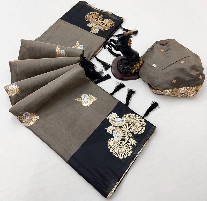 | Product Name | Dark Grey Soft Silk Saree With Zari Weaving & Peacock Motifs | |