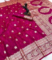 Dark pink banarasi silk saree with zari embossed jal design & rich pallu