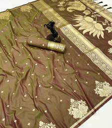 Golden banarasi silk saree with swan zari motifs & designer pallu