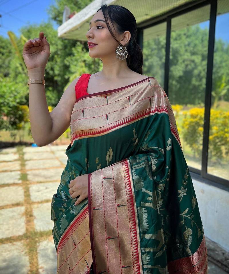 Green art silk woven saree