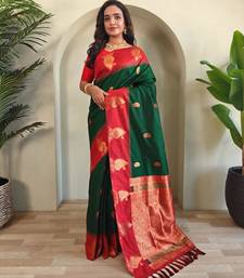 | • | Saree | : | Color- Green / Fabric- Art Silk |