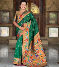 Green elegant art silk woven saree with rich zari border