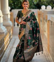 Green elegant art silk woven saree with rich zari border
