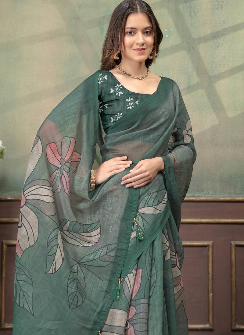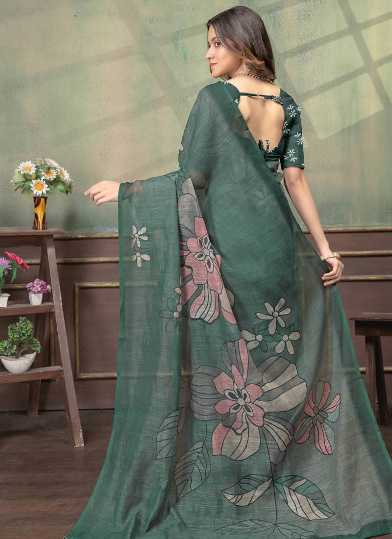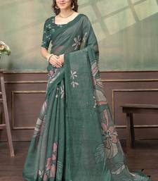 Green printed art silk designer pallu saree