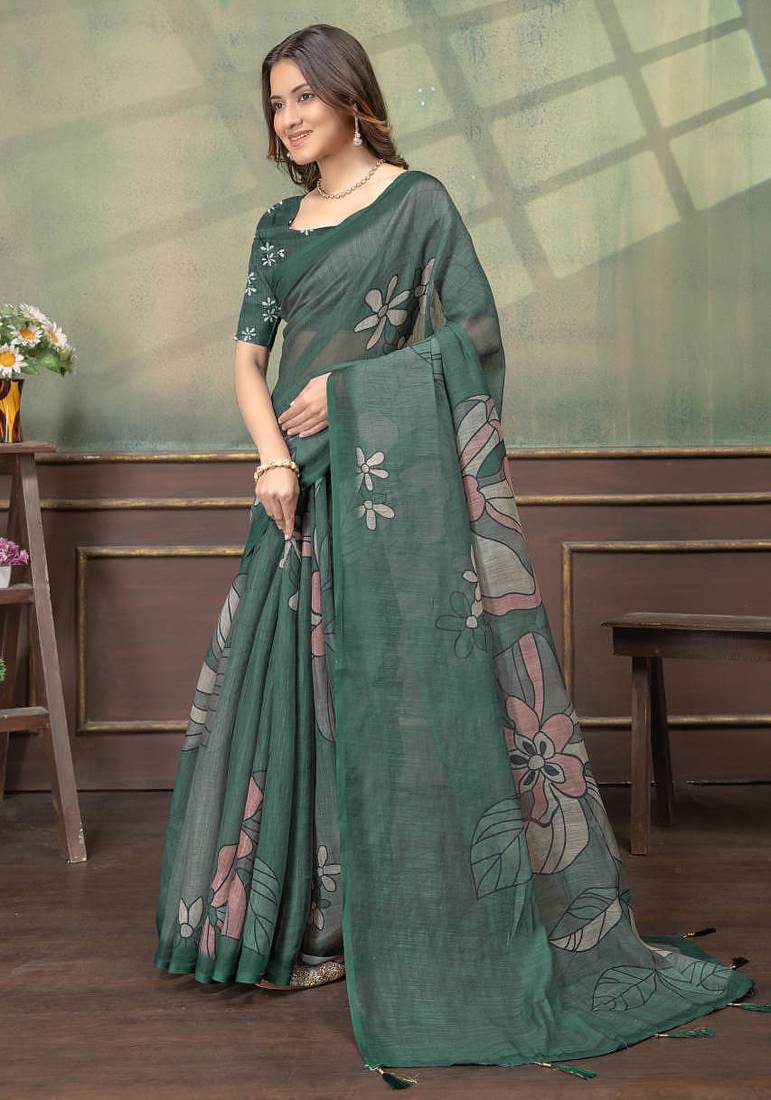 | Product Name | Green Printed Art Silk Designer Pallu Saree | |