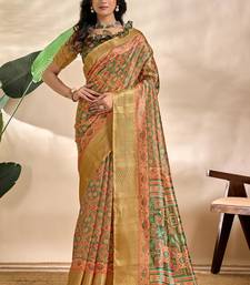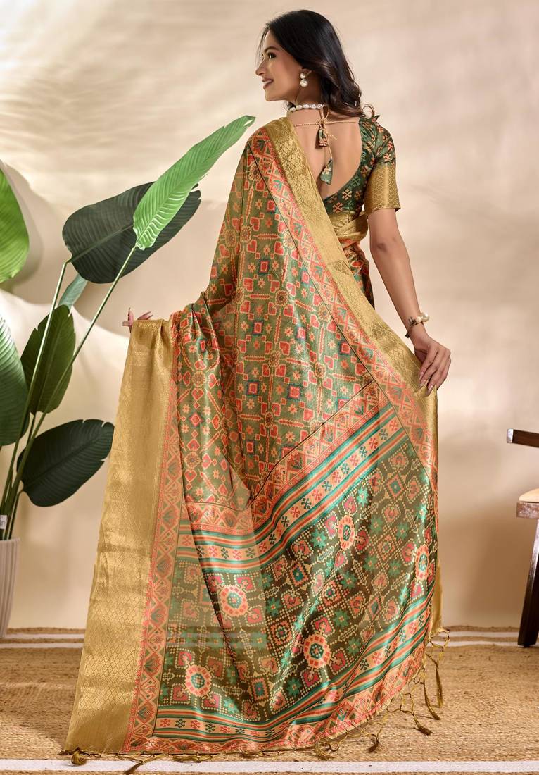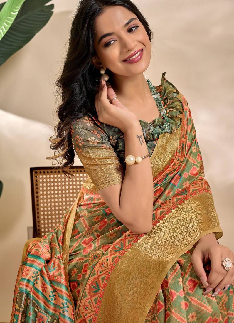 Green printed art silk designer pallu saree