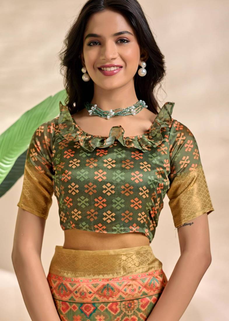 | • | Blouse | : | Color- Mehendi / Fabric- Art Silk |