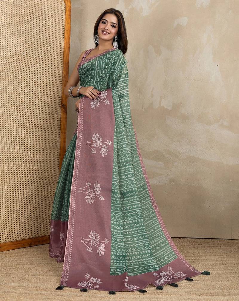 | Product Name | Green Printed Art Silk Designer Pallu Saree | |
