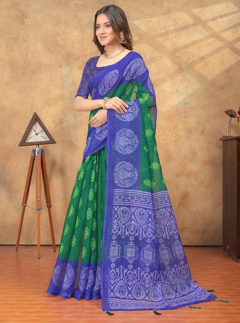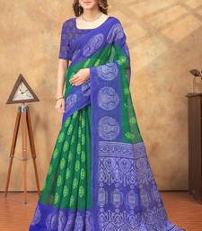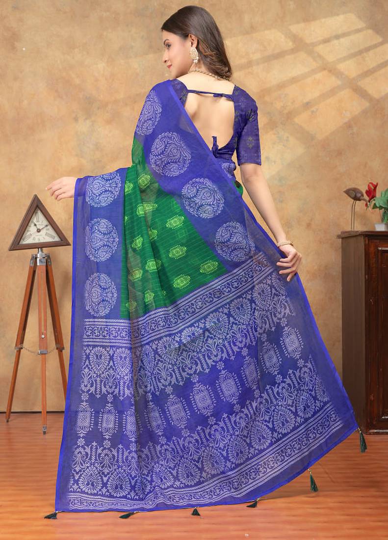 Green printed art silk designer pallu saree