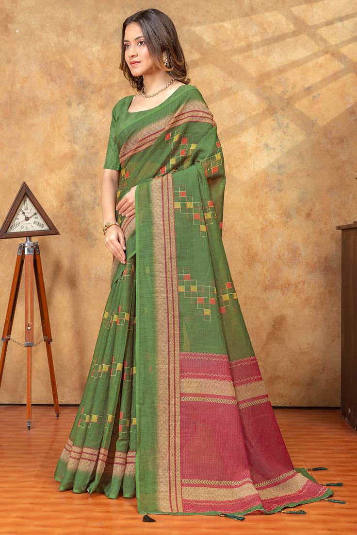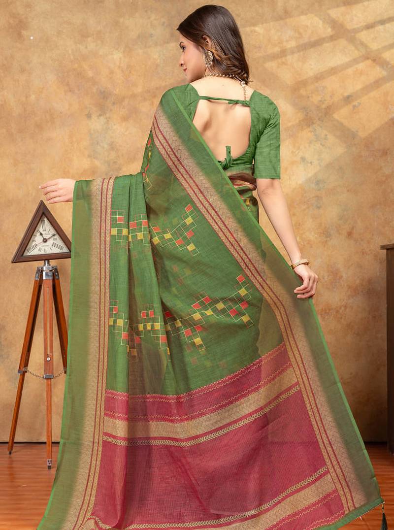 | Product Name | Green Printed Art Silk Designer Pallu Saree | |
