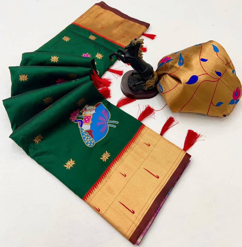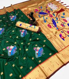 Green soft silk pichwai paithani saree with lotus butta & double muniya border