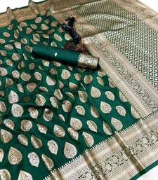 Green soft silk saree with zari butti design & rich woven pallu
