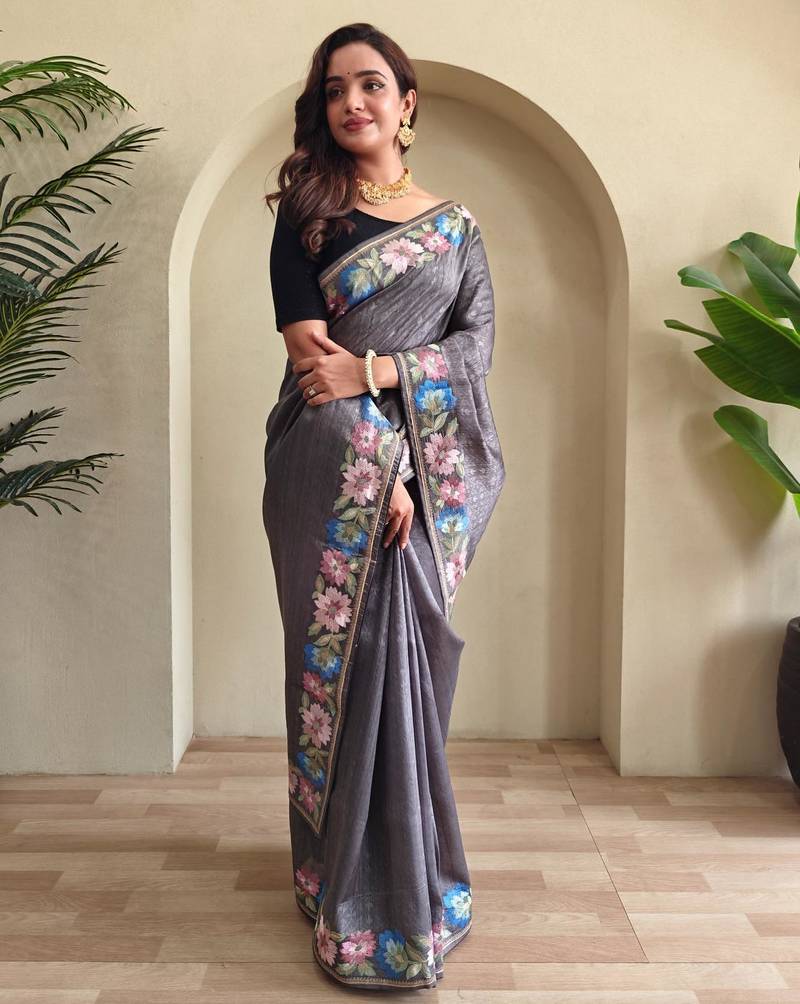 | • | Saree | : | Color- Grey / Fabric- Art Silk |
