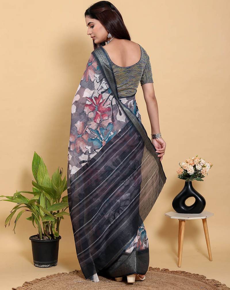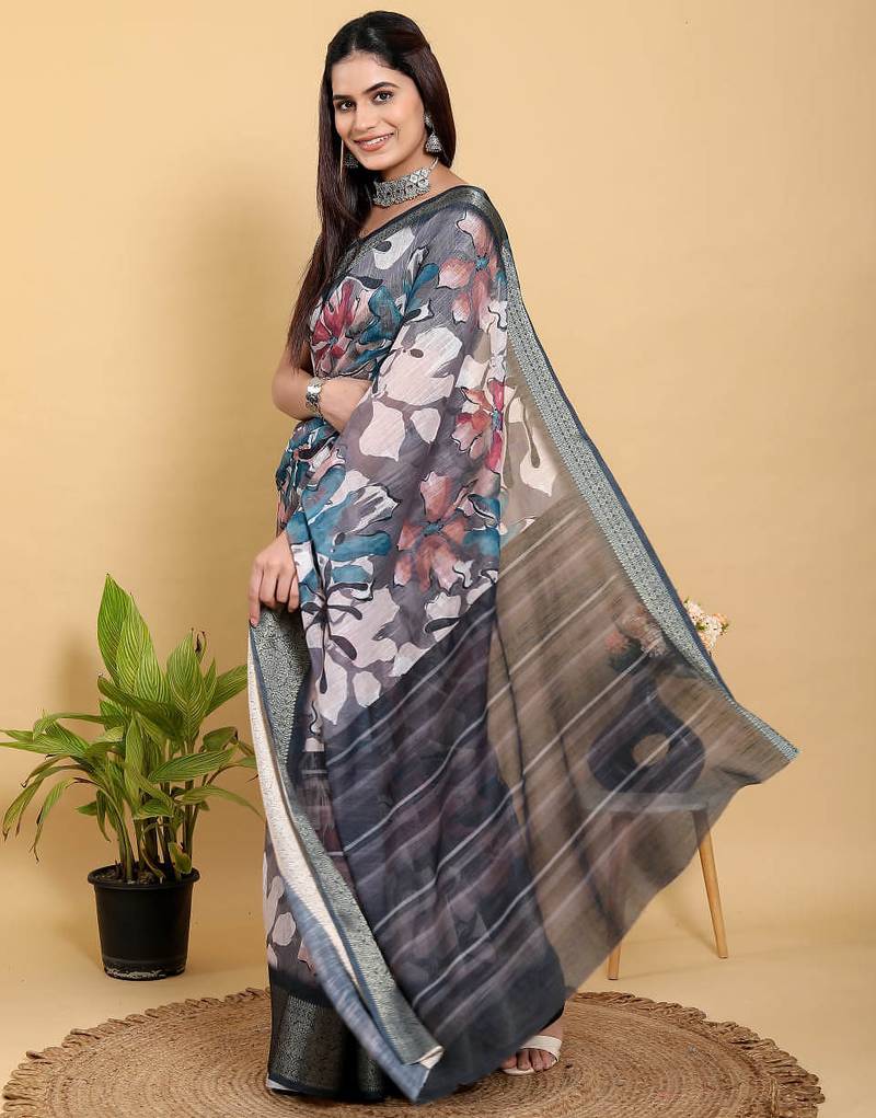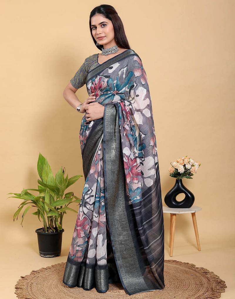 | Product Name | Grey Printed Art Silk Designer Pallu Saree | |