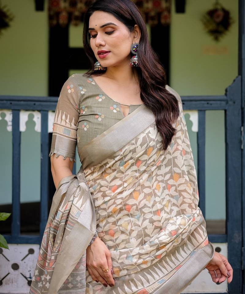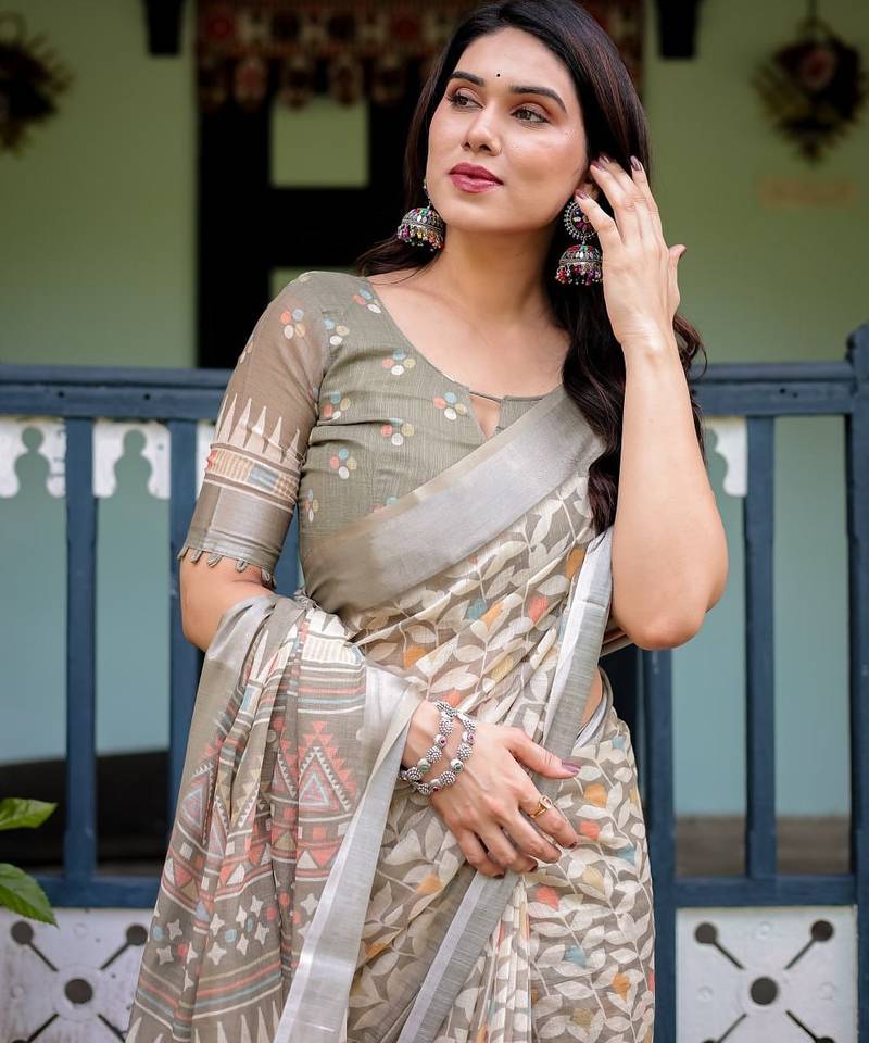 | Product Name | Grey Printed Art Silk Designer Pallu Saree | |