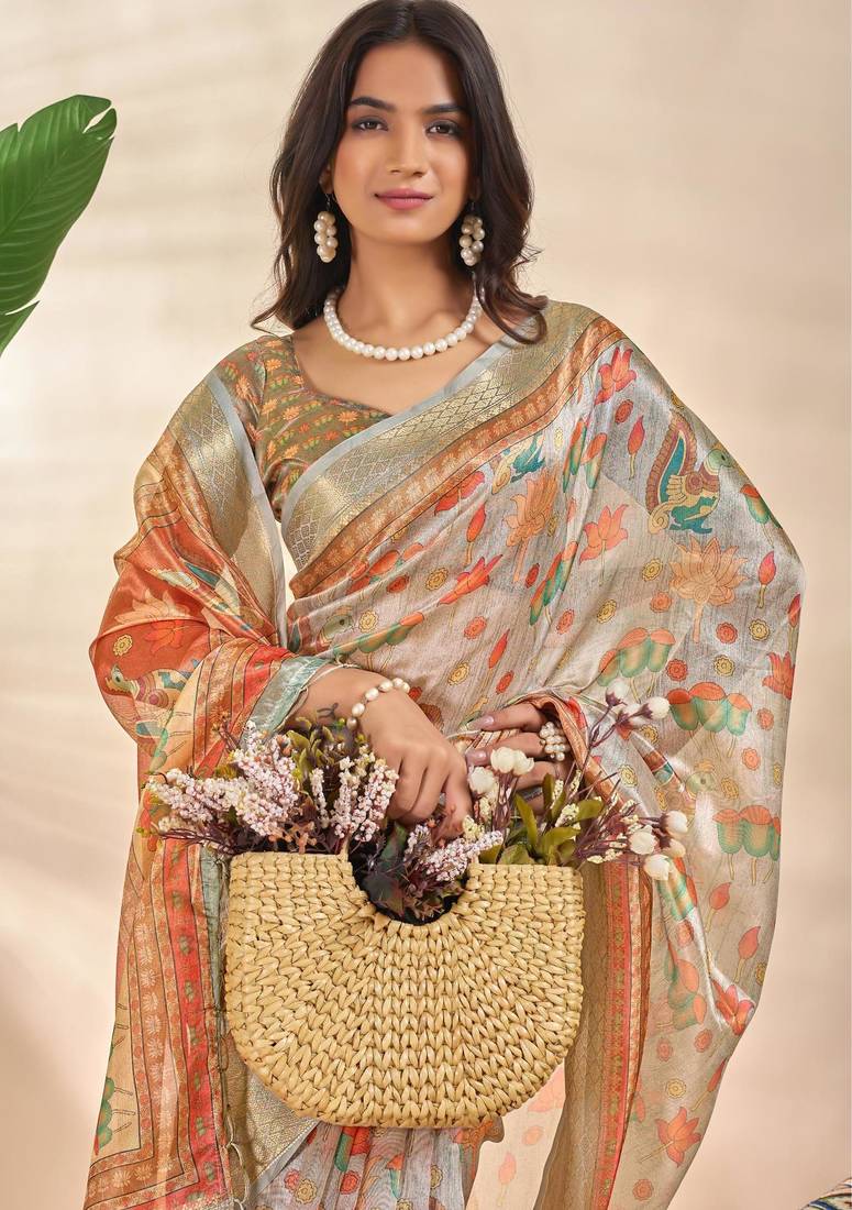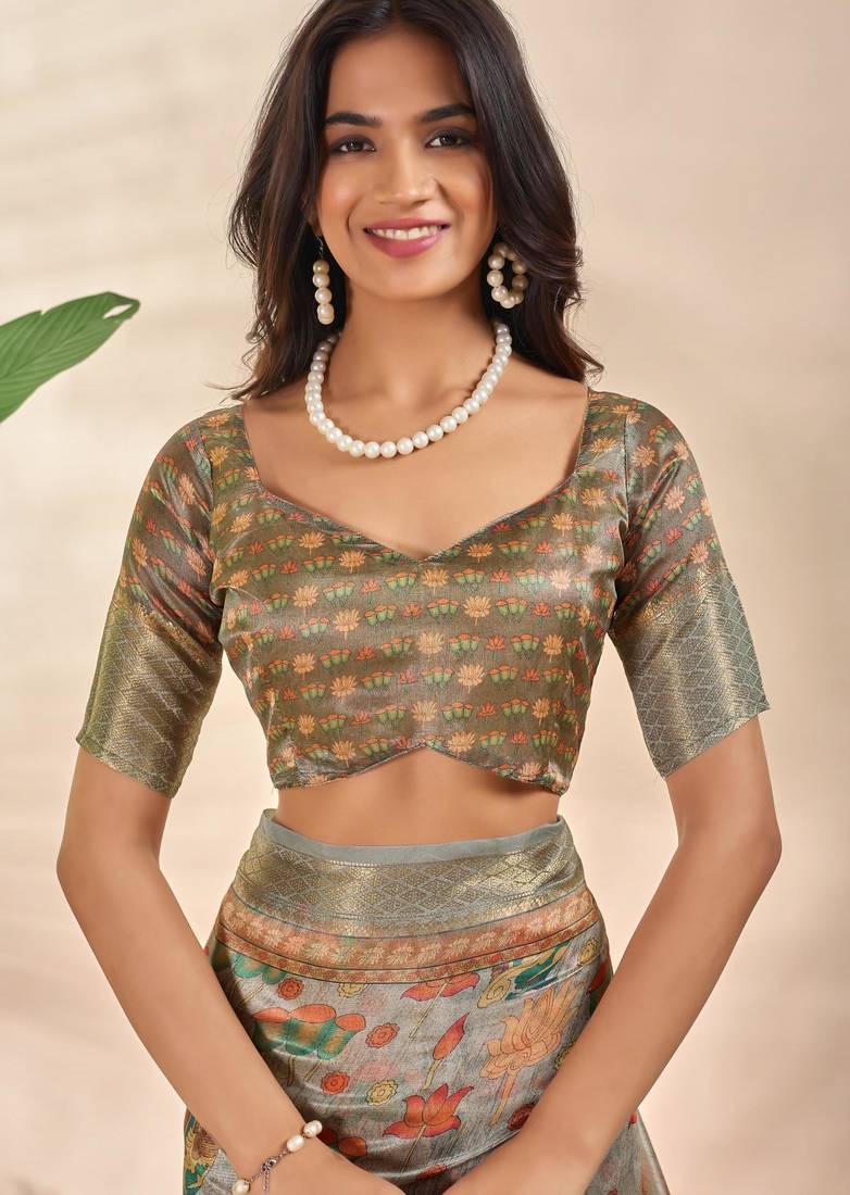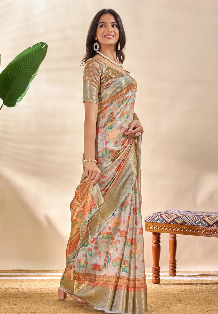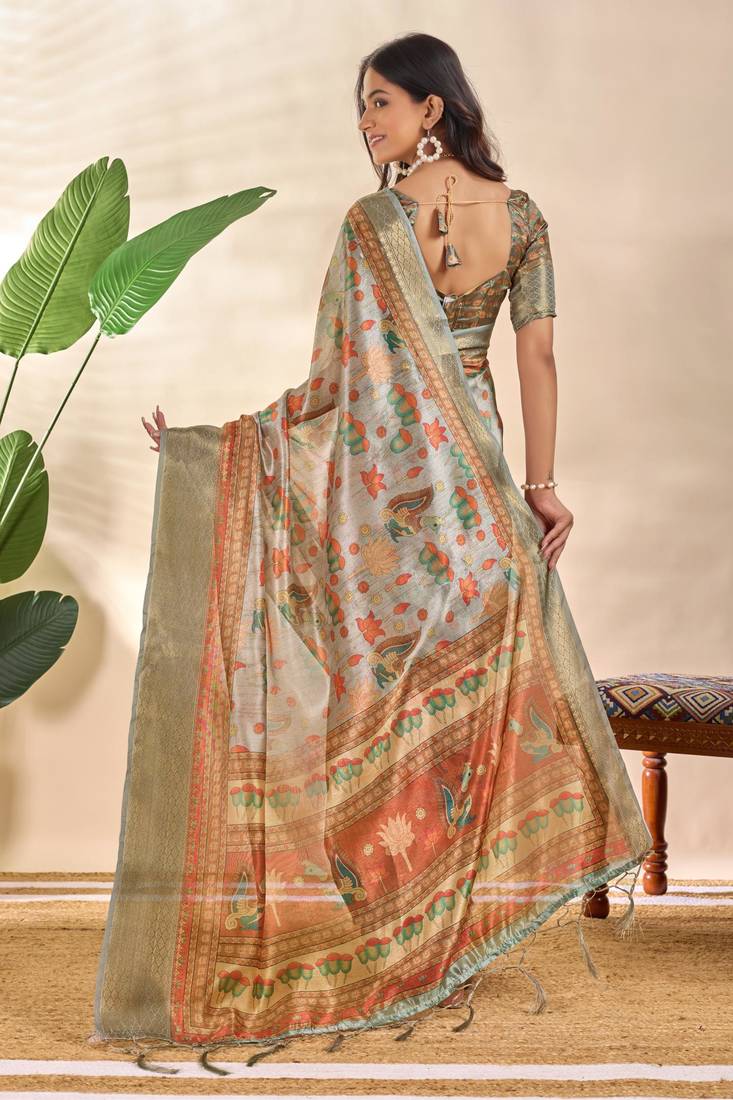 | Product Name | Grey Printed Art Silk Designer Pallu Saree | |